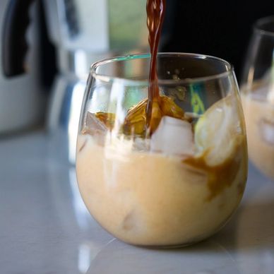 Made with Nuestro-Cafe black coffee strong coffee, ice, optional sweetener and cream.